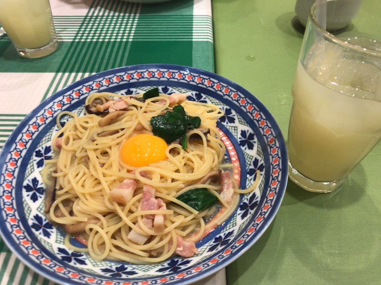 カルボナーラって卵混ざっているのがイメージですが、生卵を混ぜるカルボナーラでした。