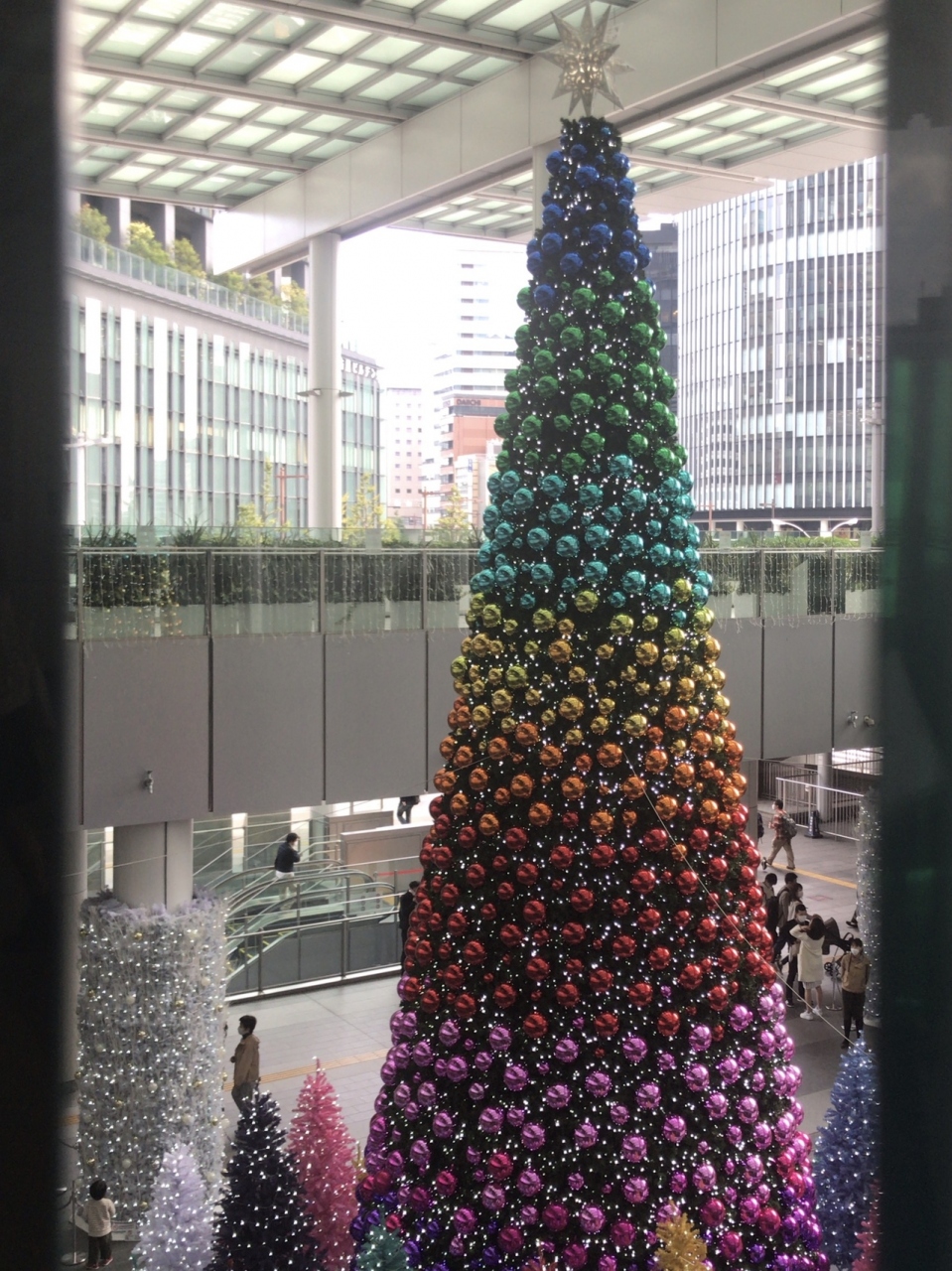 名古屋駅の玄関にあたるところに大きなきれいなクリスマスツリーが登場しました。