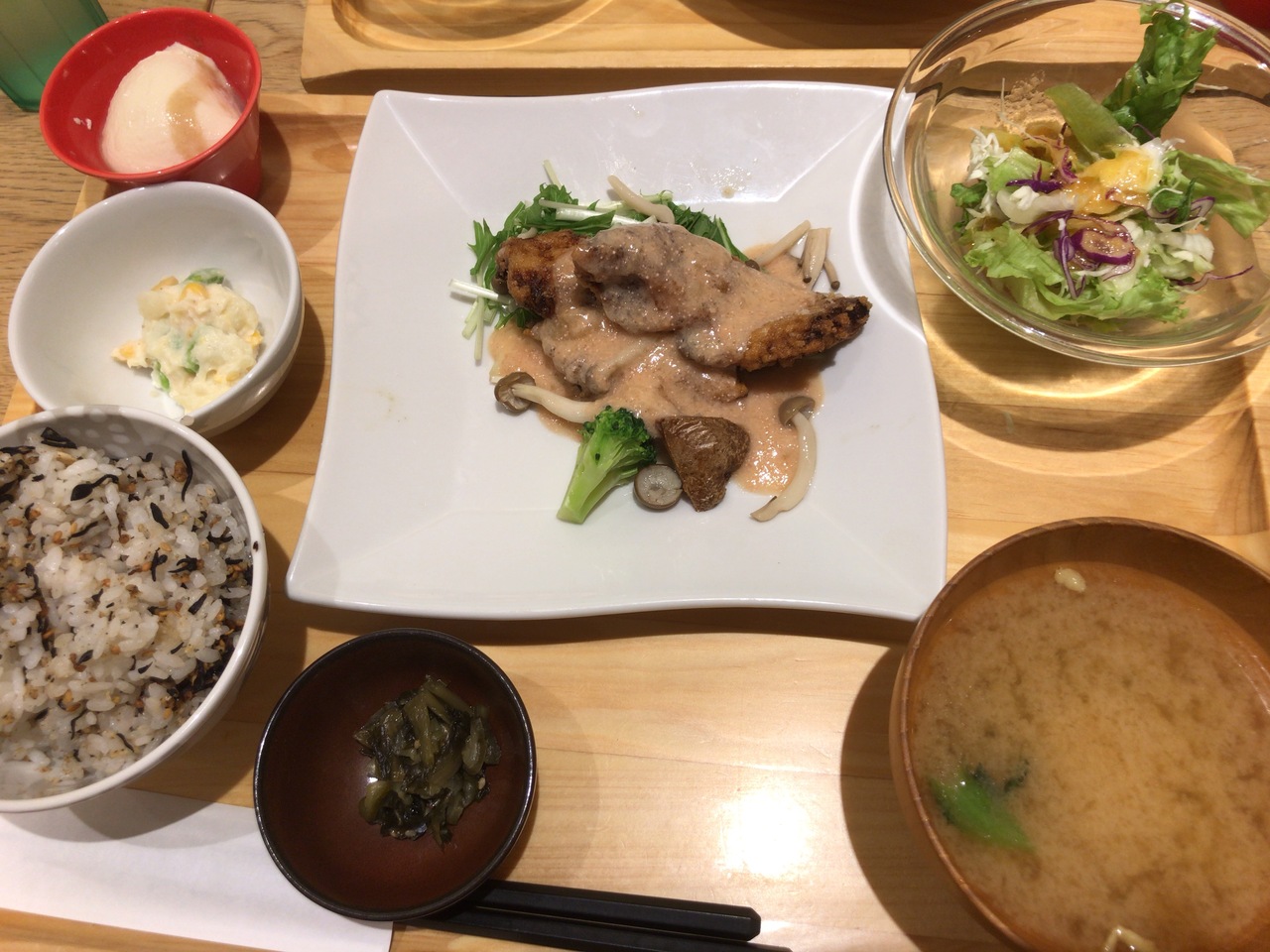ほとんどのメニューにご飯、味噌汁、サラダ、などが付いています。