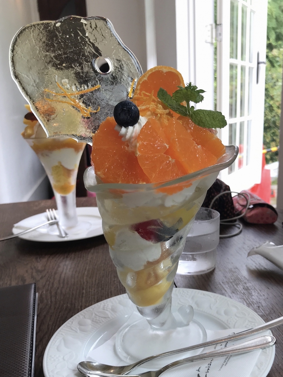 今はコロナウィルスの関係でパフェの容器もプラスチック、スプーン、フォークも使い捨てのプラスチックですが、予防策としていた仕方ないです。