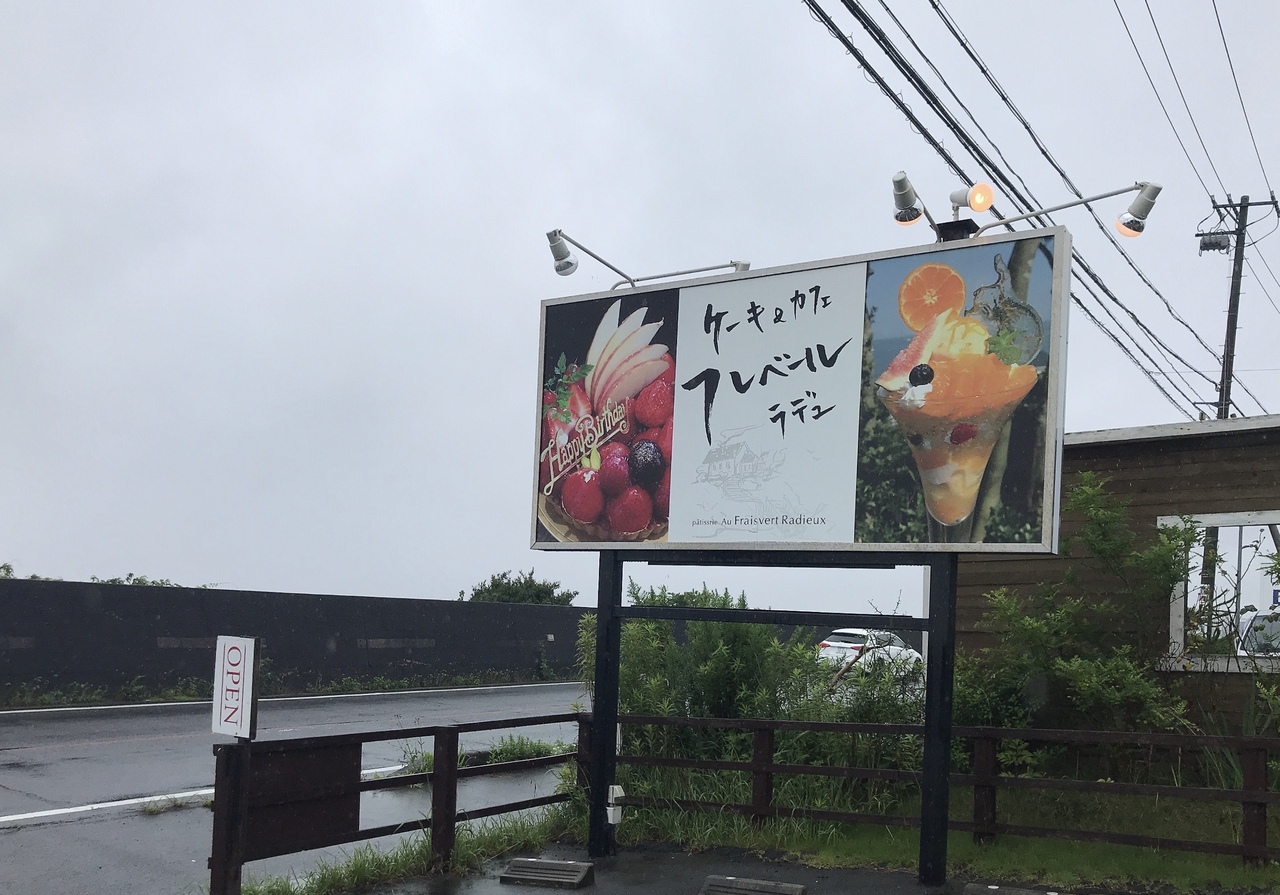 お天気がよければテラス席から海が見えるそうです。訪れた日はあいにくの雨で見えませんでした。