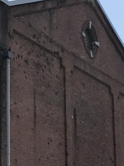 外の壁には機銃掃射痕がたくさん残っていて戦争の怖さが伝わってきます。