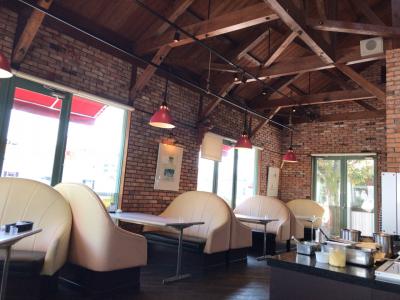知多半島美浜の海辺の高台にある可愛いカフェです。店内はそんなに広くないですが、吹き抜けになっているので開放感がありました。