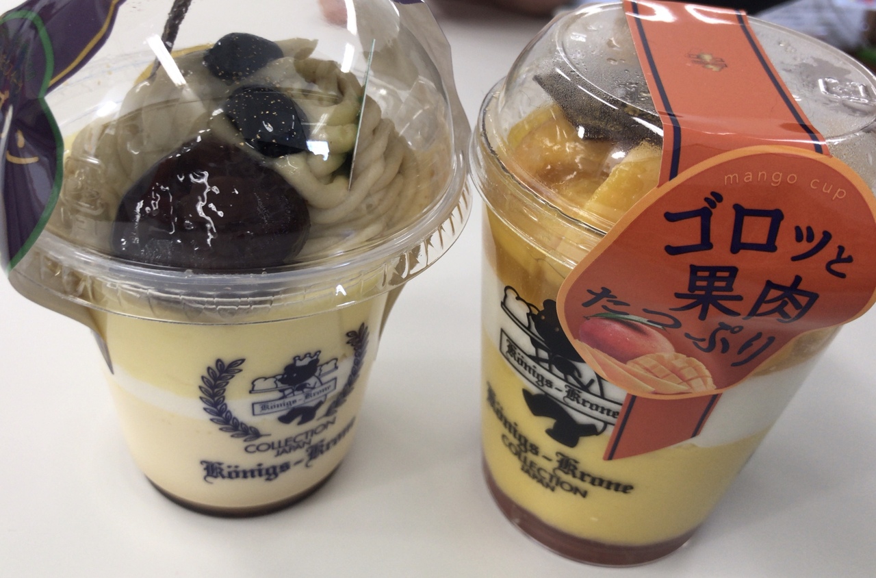時間限定のクローネをはじめ、パイ菓子が美味しく贈答にもオススメですが、今日はカップケーキです。フルーツ、抹茶、モンブラン、マンゴーやコーヒーゼリー、抹茶ゼリーなど沢山種類があり迷います。今日はモンブラン食べてみました。中はスポンジは無くクリームとプリン。大きなわらび餅が入っていました。
