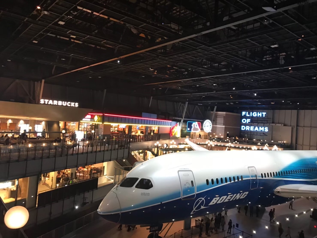 [フライト・オブ・ドリームズ]があり、ボーイング787ドリームライナーの実機が屋内に置かれていて間近に見られる施設もあります。