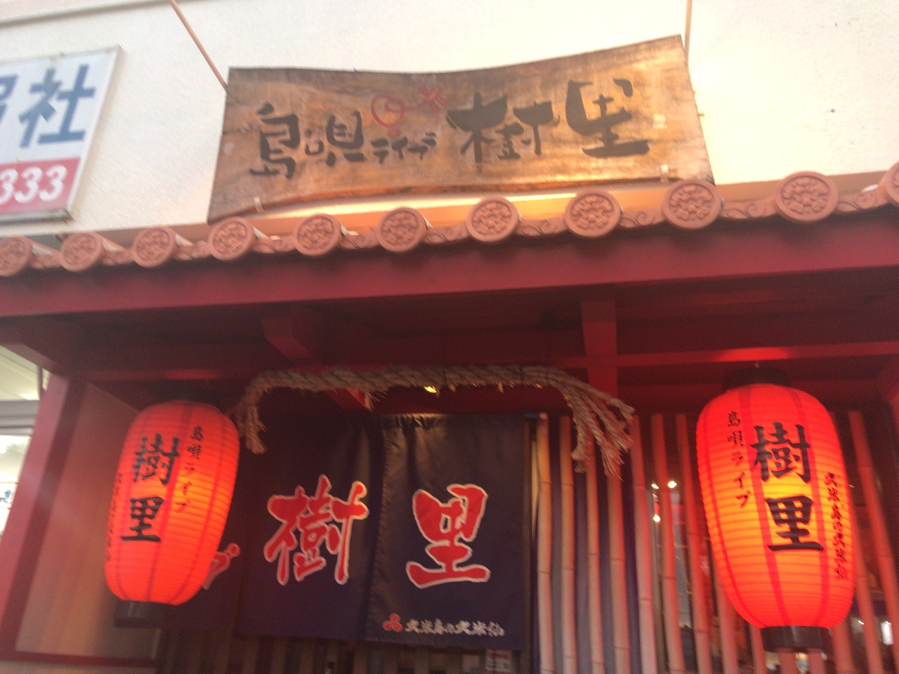 国際通りを1本入った通りを行ったところにある島唄ライブ樹里居酒屋さんです。