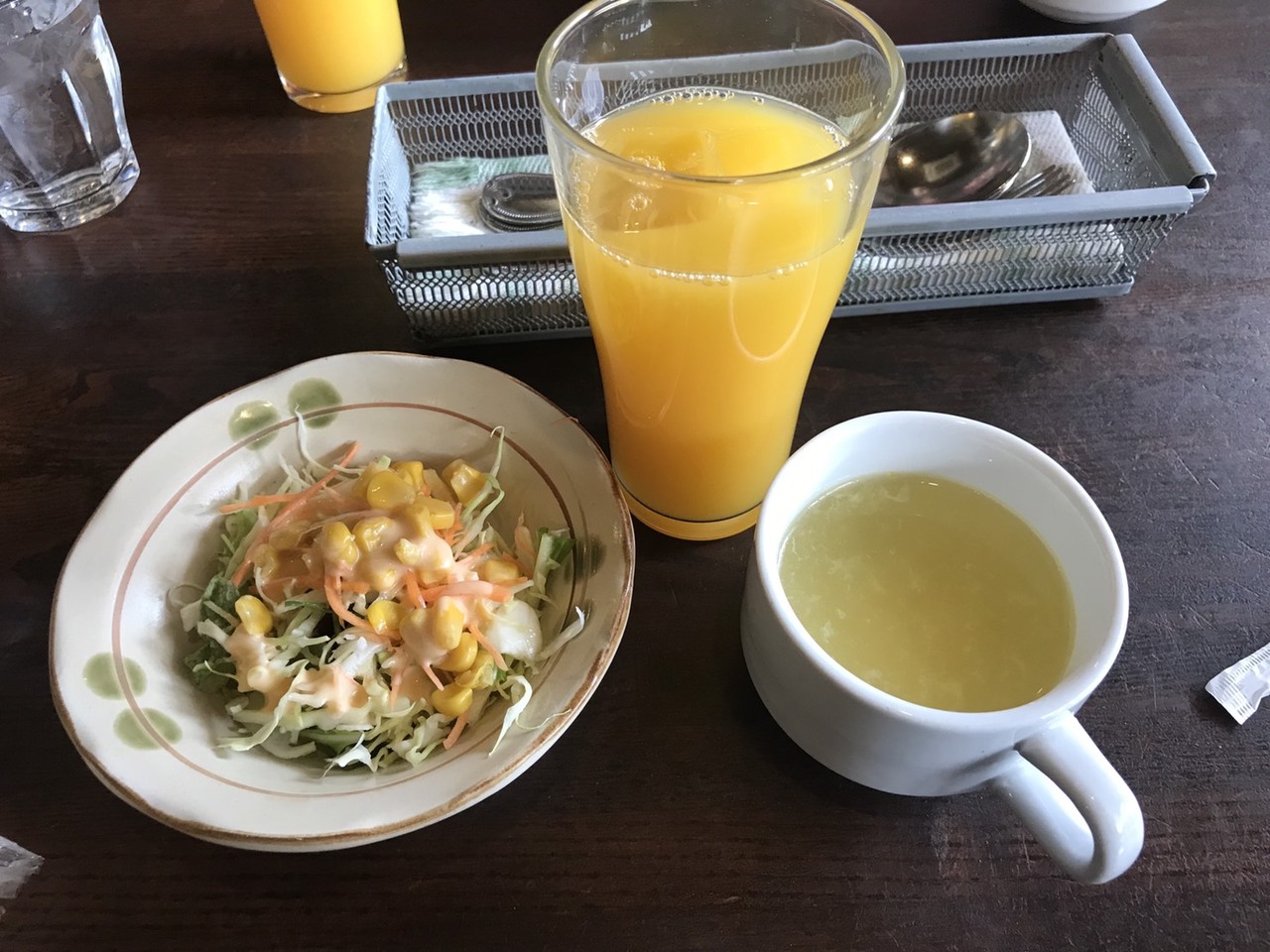 ランチはスープ、サラダ、小ライス、フリードリンクが付いてます。