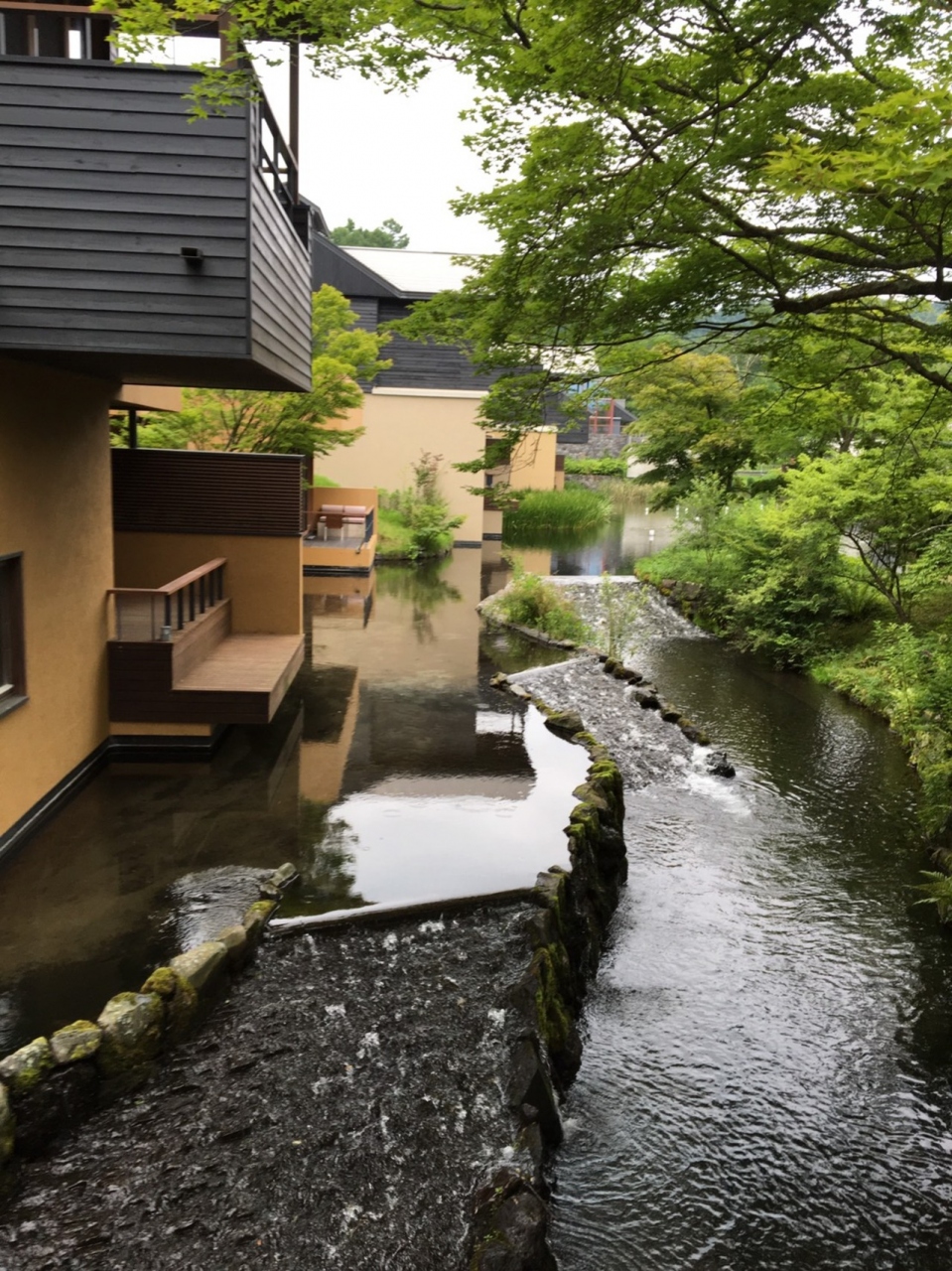 客室からは川が流れていてカモが遊んでいるのが見えます。
