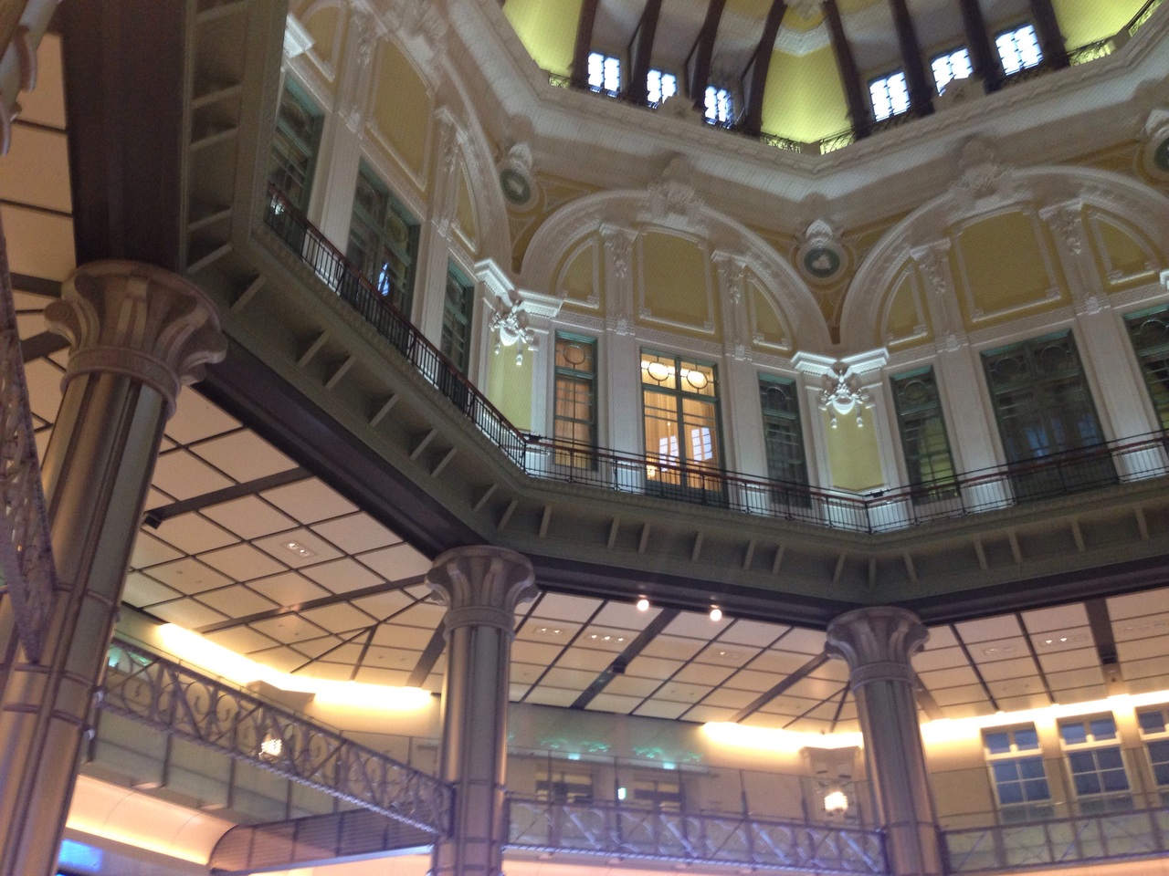 ドームを見上げると駅ではないような感覚でした。改修前の東京駅はあまり記憶にないので、自分で比較することが出来ませんでしたが、向かいのキッテのビルから見るとまた違った雰囲気でよいと思います。