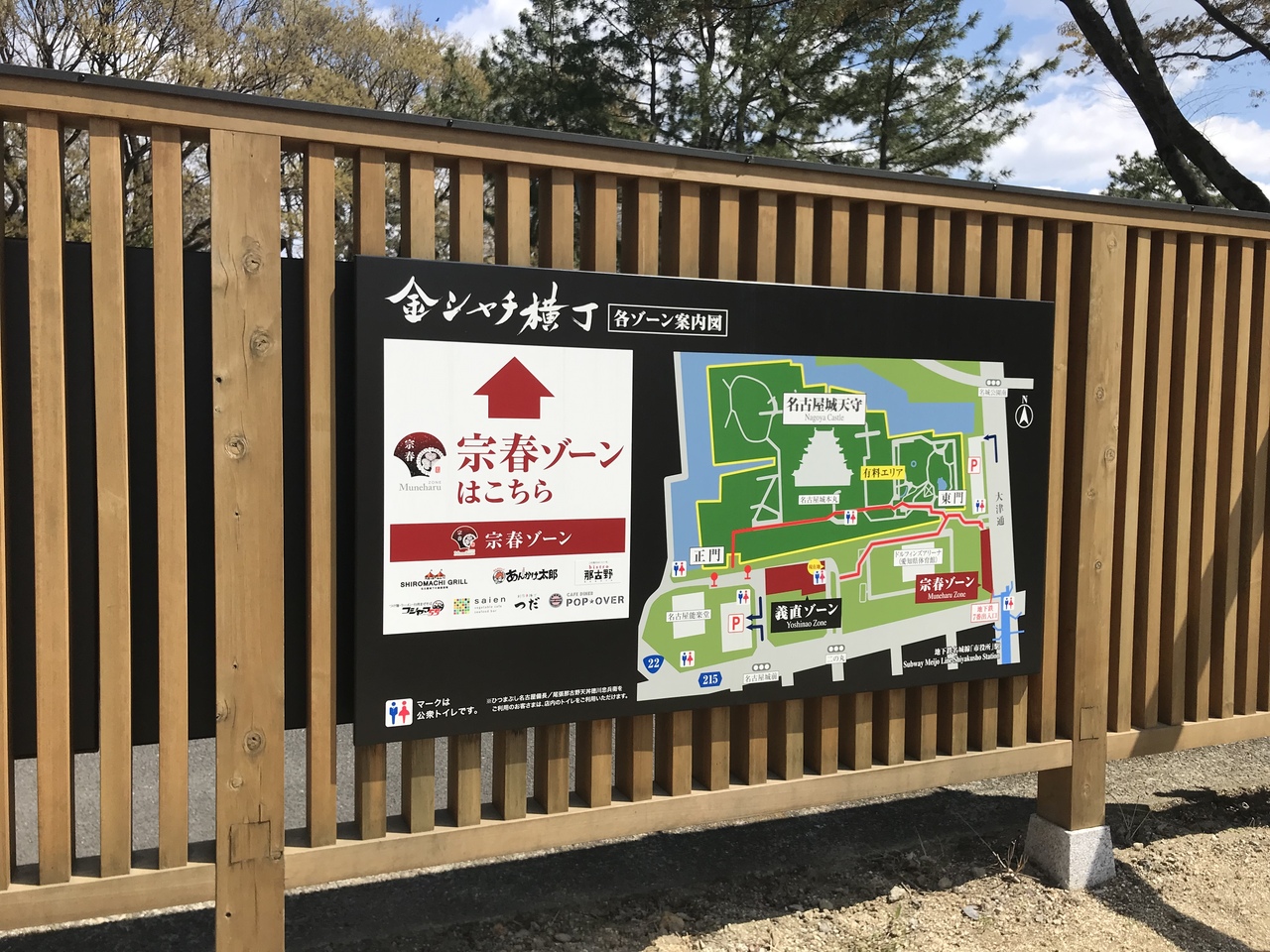 名古屋城の敷地内にある金シャチ横丁は小規模です。なごや飯を意識して鰻、味噌煮うどん、名古屋コーチン親子丼、味噌カツなどのお店があります。