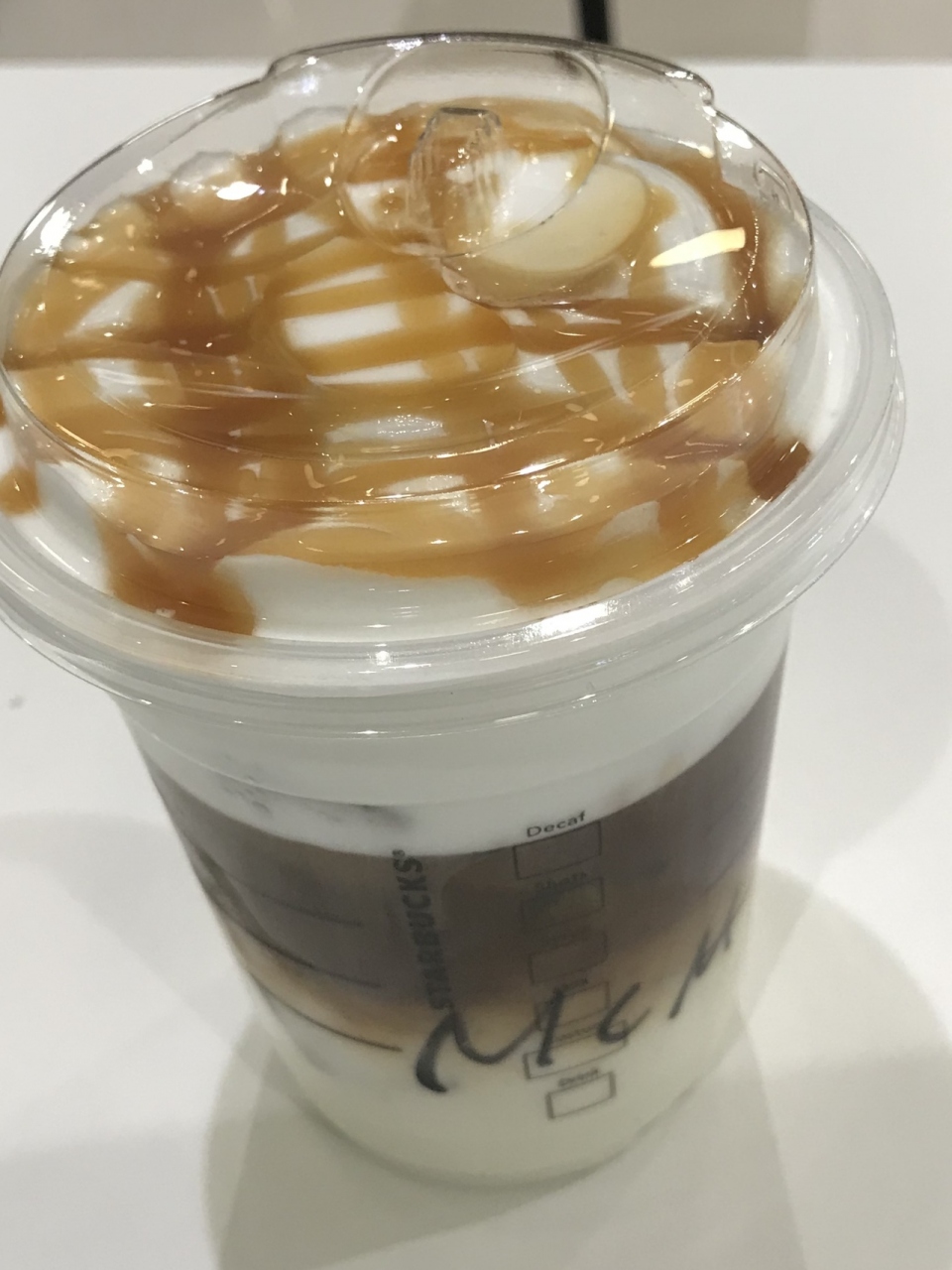 で、490円のムースのキャラメルマキアートを190円で飲みました。