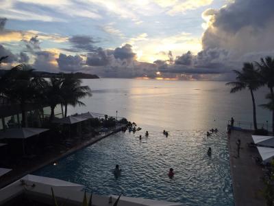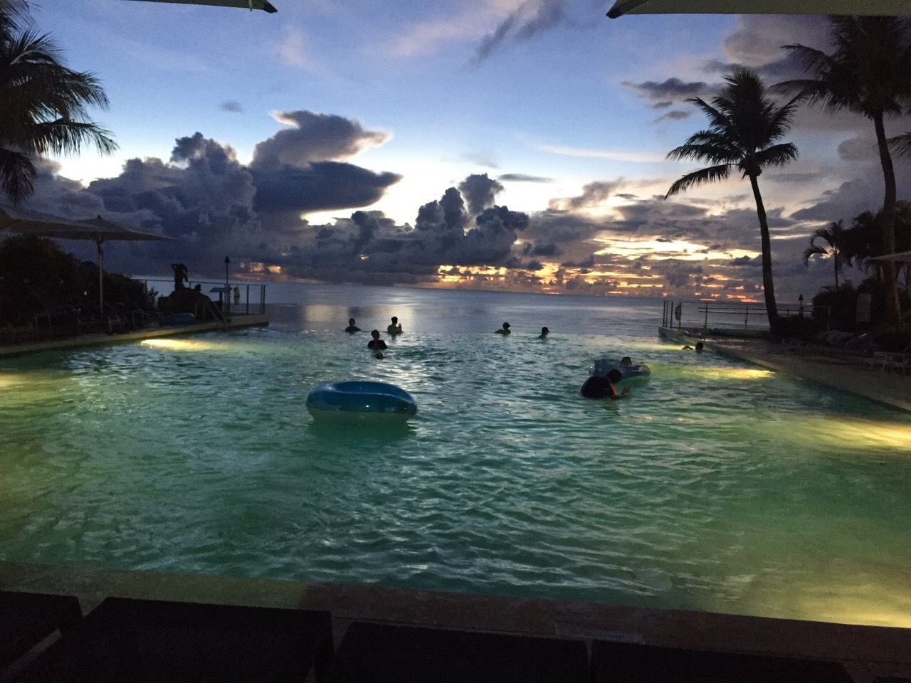 ロビーから見たプールのインフィニティがとても綺麗で感動!サンセットを見ながらもよし、朝もよしです。もちろんプールに入って海を眺めるのもよし!