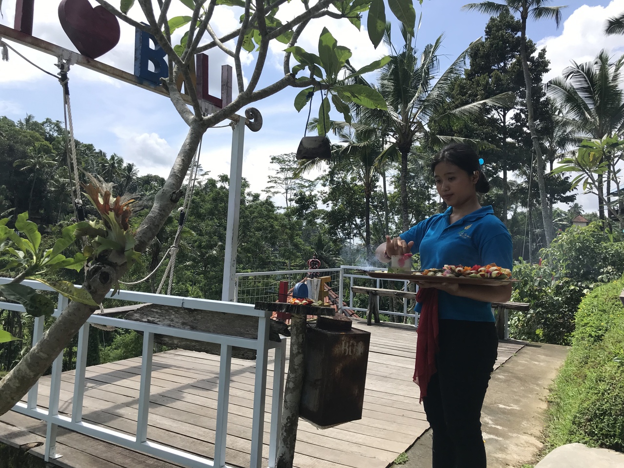 緑の棚田を見ながらのナシゴレンはとても美味しかったです。