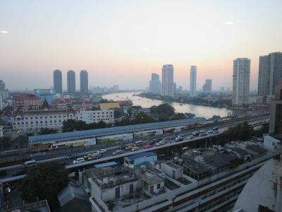 窓からチャオプラヤー川が眺める事ができ、朝・夕・夜と景色が