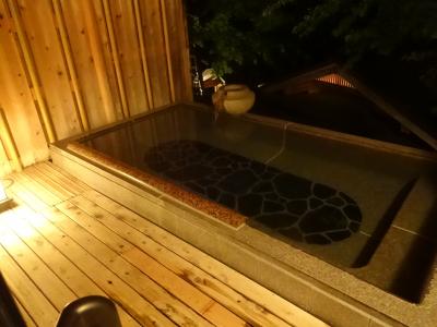 お部屋には専用の半露天風呂が付いており、24時間好きな時間に入れるのは非常に嬉しい^^