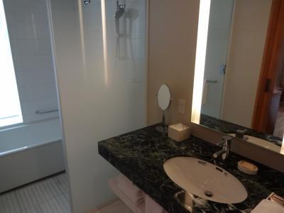 窓からの景観は、、市内とは逆方向らしく、、ちょっと地味かな? それでも、バスルームからの眺望、いわゆる”バス・ビュー”があるのは気持ち良し♪