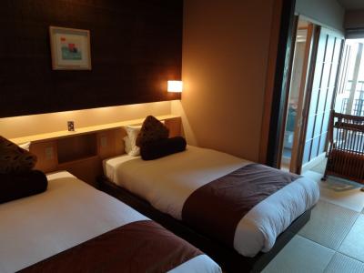 予約したお部屋は、約40平方メートルの”スタンダード・ツイン” 畳が敷かれたフロアの先には瀬戸内海に面した”ウッドデッキ”と”露天風呂”が付いており、、最高の眺めが望めました☆