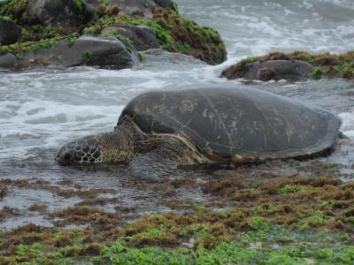 ホヌ君がここにやって来るのは、主食である海藻が岩場にびっしり生えているため。