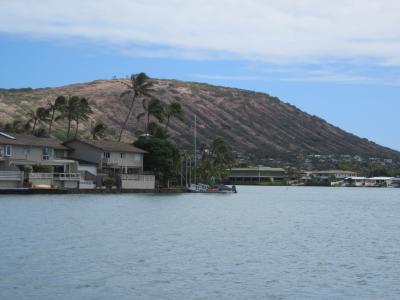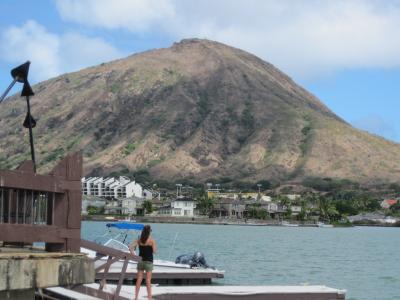 まず買ったら、それを持ってタウンセンターを出て通りを右折、橋を渡って下さい。徒歩5分とかからず右手に小さなショッピングセンターあり。ハワイカイショッピングセンターと言いますが、その敷地に入り、レストランの間に大きな池あり。その先にはココクレータ&ココヘッドを眺めることの出来る休憩所。こちらでお召し上がり下さい。