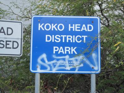 停留所に入る前の道路に戻り、その道路を渡った左手。「ココクレータ・サミット・オールドウェイ・トレイル」の入り口へ。略して「ココクレータ・トレイル」。行き方はちょいと面倒なので割愛(笑)。