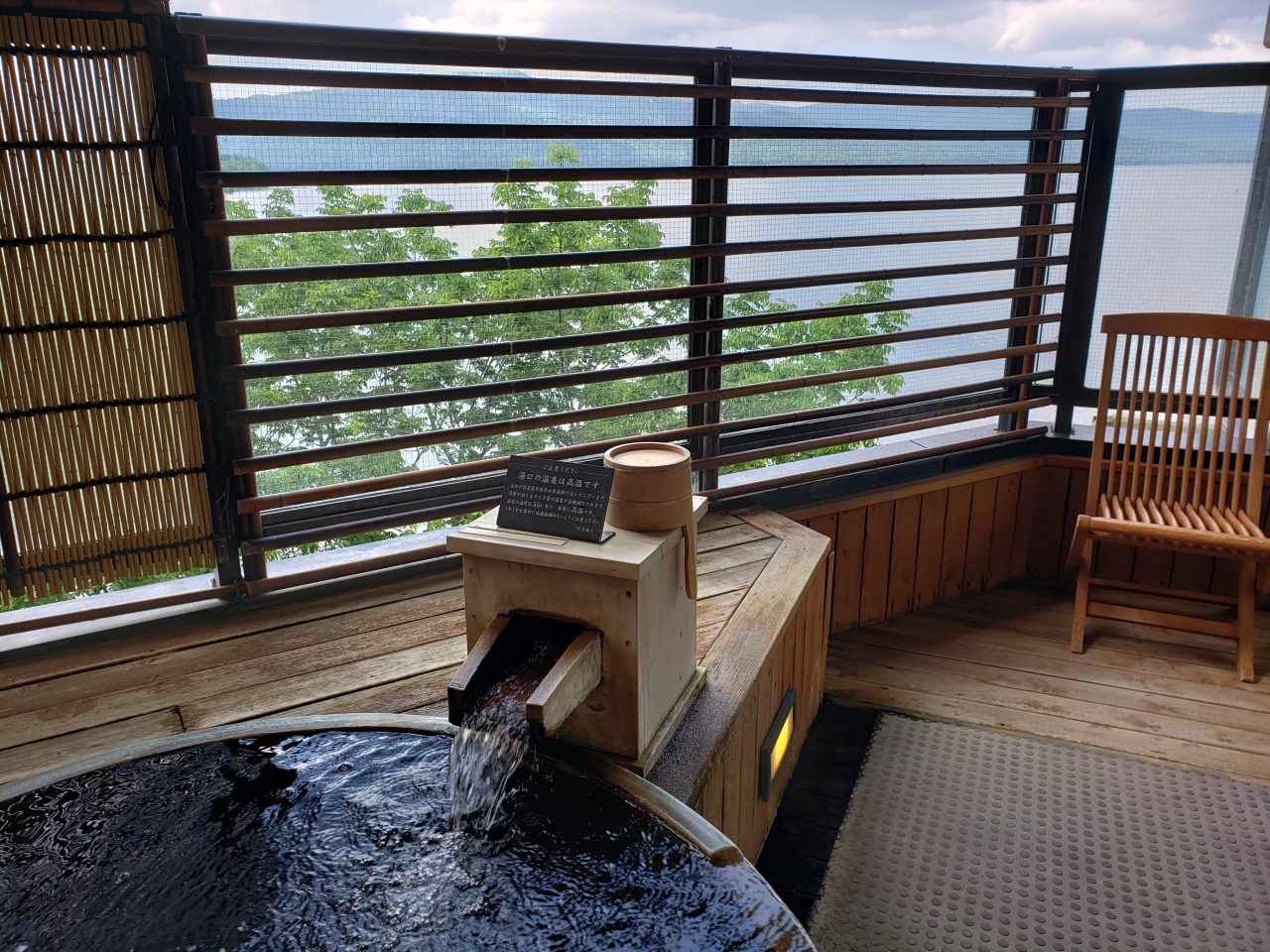 2階以上の客室は、廊下がすべて畳敷き。部屋はすべてがスイートで、阿寒湖が見える露天風呂が各部屋についています。かけ流しです。夏だったので非常に気持ちが良い。
