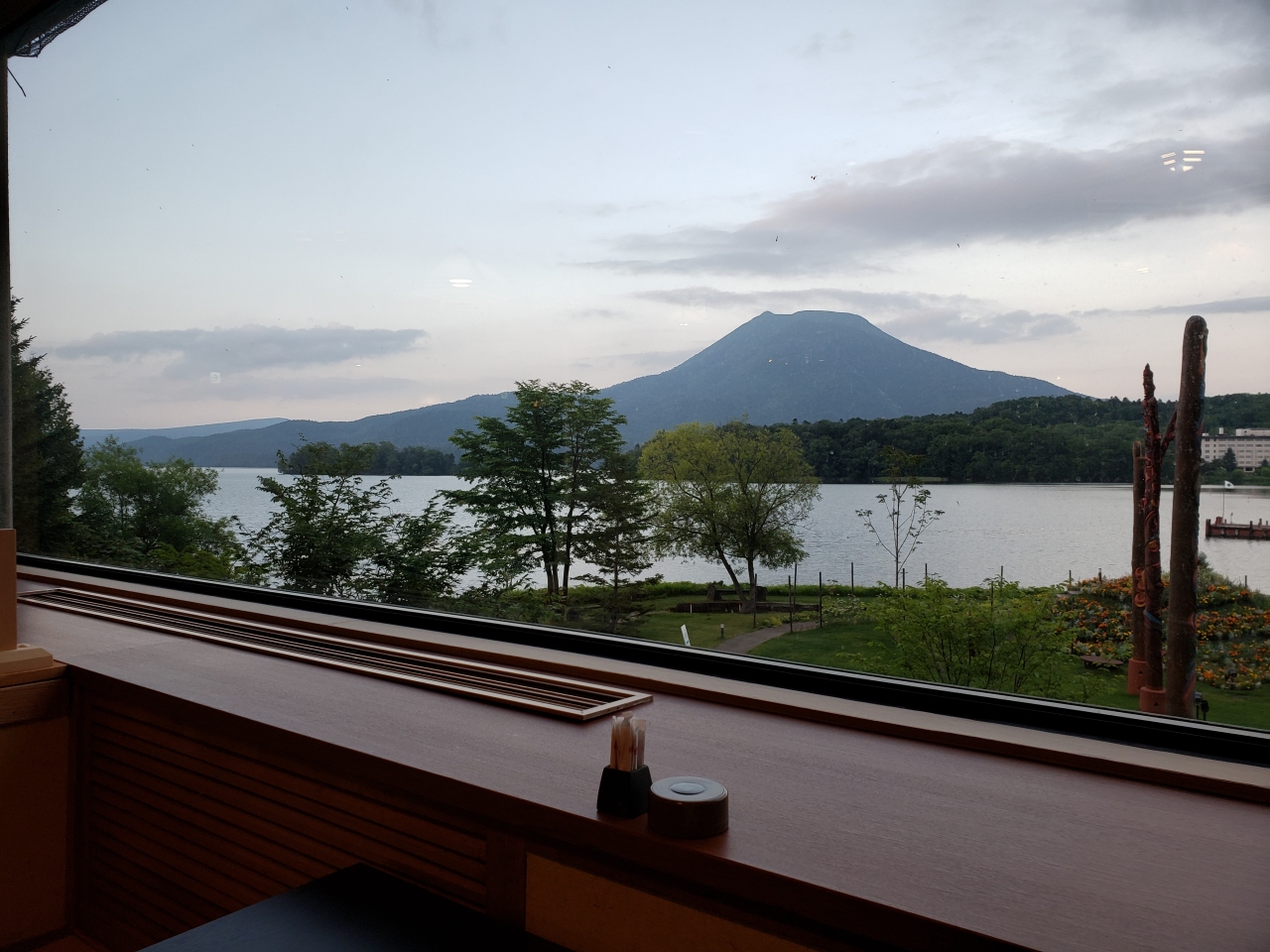 食事は、夕食はビュッフェの他に会席も用意され、そこからも雄阿寒岳がきれいに見えました。