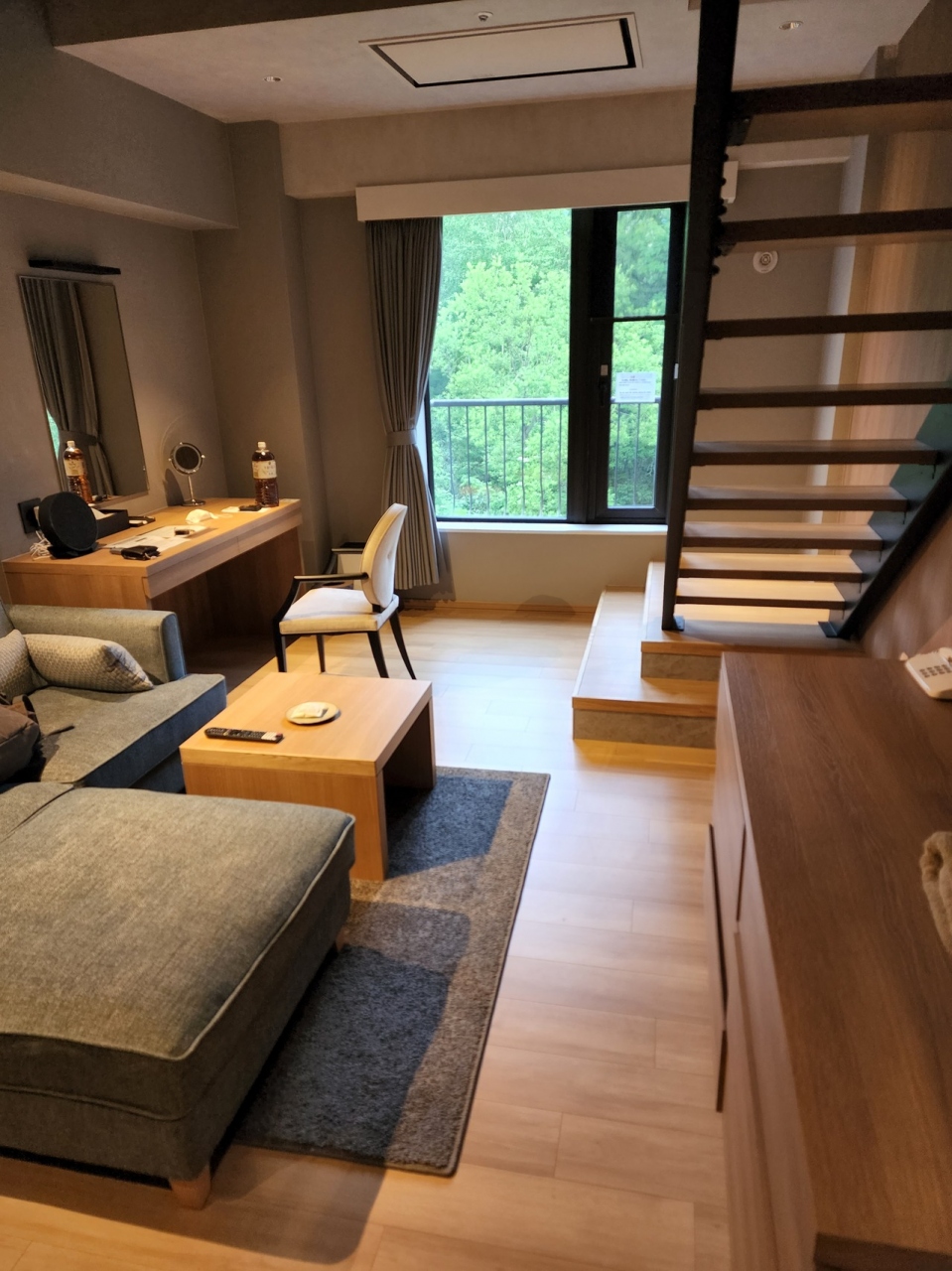 シングル利用でしたが、部屋は中で2階があるいわゆるメゾネット。2階にはベッドがありましたが、喚起が悪くて暑かった・・・換気扇はありましたがつけるとうるさいし。部屋自体は広くてきれいでしたが、階下で寝たかった。
