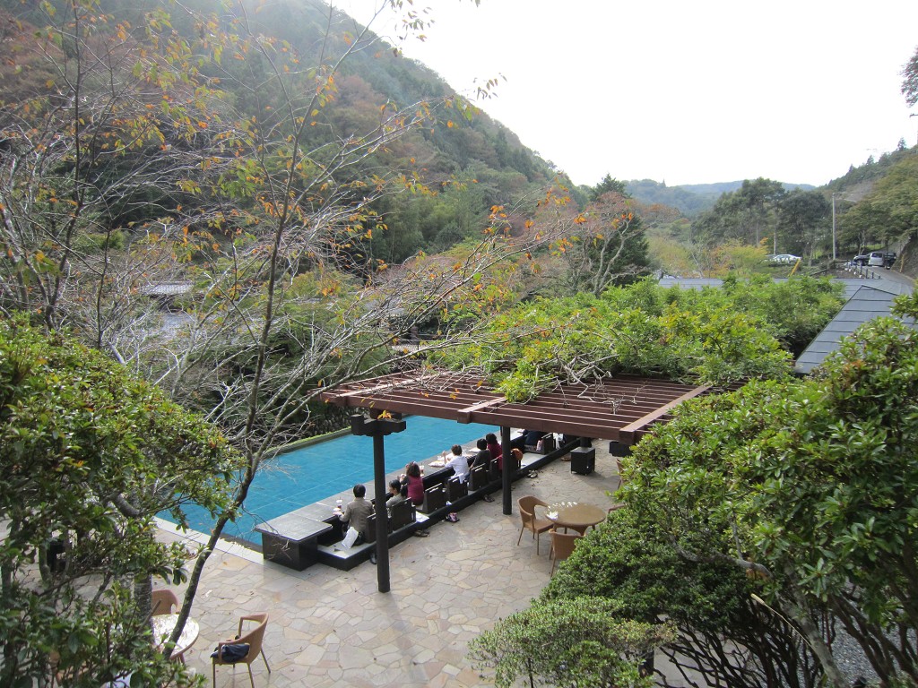 足湯に浸かりながらおいしいパンを頂く・・外観からはそんな雰囲気はしませんでしたが、実際体験してみるととても心地よかったです。女性ならファンになってしまう場所でしょう。水盤が美しく、パラソルが似合い、全体は公園と旅館になっています。ゆっくりしたいスポットです。
