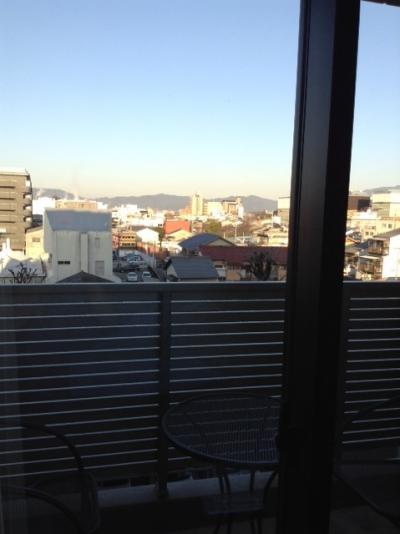 また、バルコニーがあり、遠くに東寺の塔が少しだけ見えました。京都駅南なのでいわゆる古都らしい風景は期待しない方がよいです。