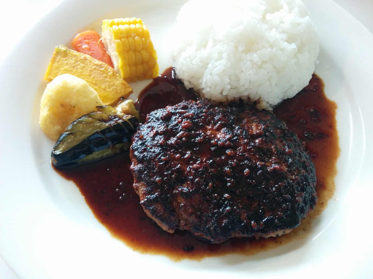ハンバーグはジューシーでとても美味しく、