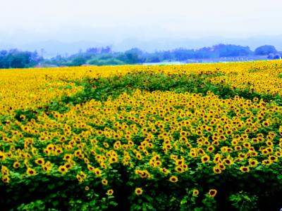 明野のひまわり畑は、広大な土地に、