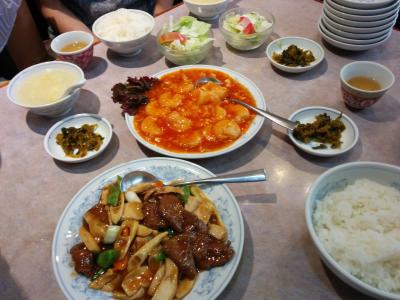 お肉、わかめスープ、ごはんと、盛りだくさん。