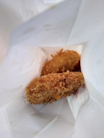 散歩中に小腹が減り、コロッケとメンチカツの店内揚げを注文しました。