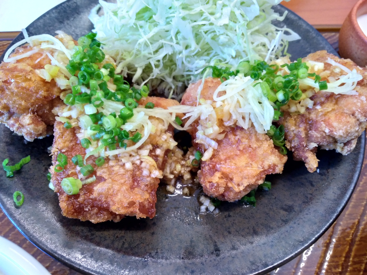 自分は油淋鶏を注文。かりっとした触感を楽しみたい方は王道のから揚げ定食がおすすめです。
