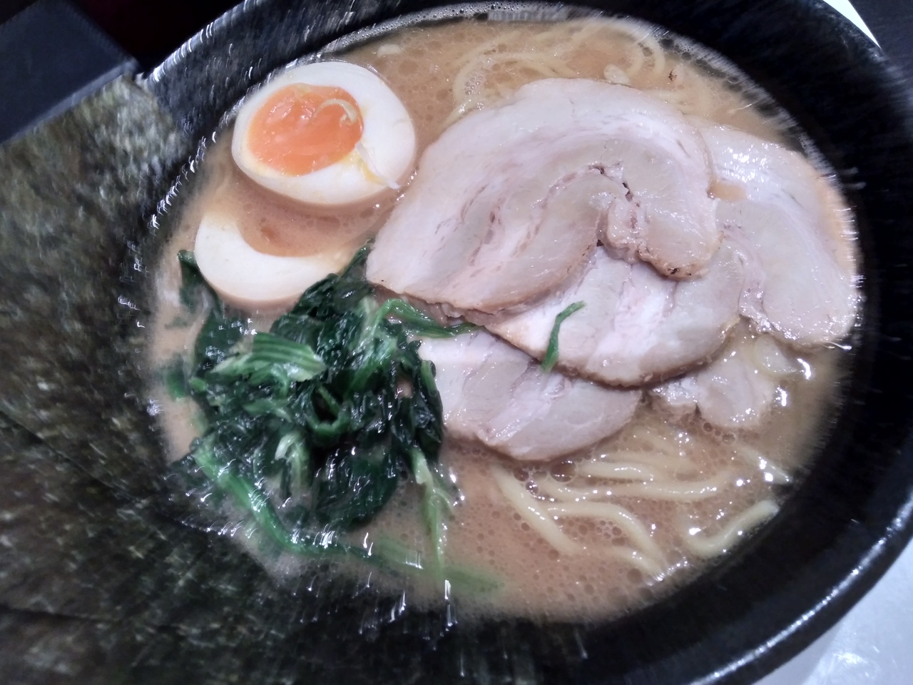 ラーメンは家系らしい豚骨醤油スープと太麺がよく絡み、美味でした。