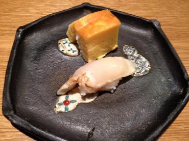 前菜 、刺身3種 、一品料理 、すし10種 、お椀 、デザートのおまかせコース(13800円)をいただきました。