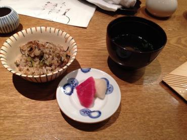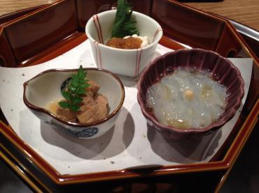 先付け、握り、揚げ物、造りの盛合せ、椀物、珍味、焼き物、ご飯物、水菓子という内容ですが、どれも1皿1皿丁寧に作られどれも季節感のある美味しい料理です。