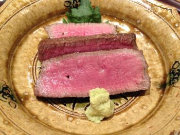 外側を軽く炙るほどの焼き加減で、中心部分はレアになっています。