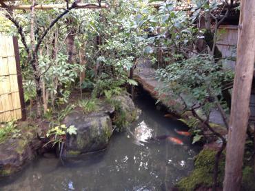 障子をあけると、流れてくる疎水の水の見える庭が眺められます。