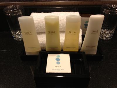 アメニティは、カジノホテルだけにシンプルに、シャンプー、リンス、シャワージェル、ボディーローションに石鹸という内容です。