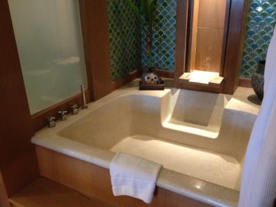 ゆったりとした大理石調のバスルームでゆったりとしています。