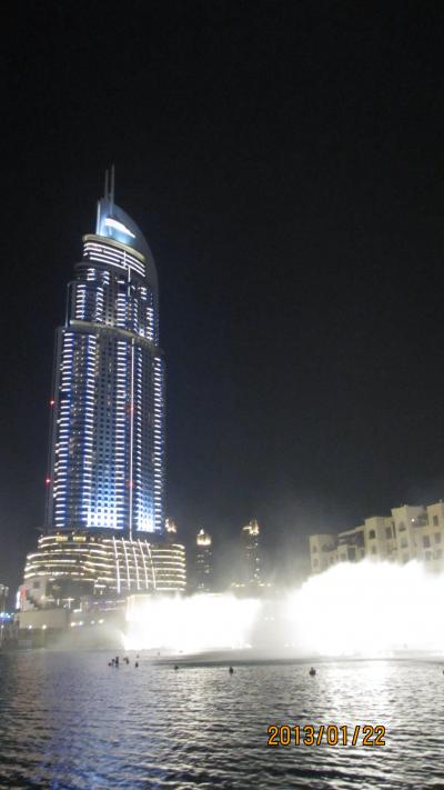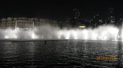 18時から30分おきにあると聞いていましたので、日の沈んだ時間を見計らい行きました。やはり人気のドバイファウンテン世界各国の人々で人造湖の周辺はごった返してました。いざスタートすると、アラブ特有の音楽と噴水のしぶき、吹き上げる水の音と大迫力でした。- 旅行時期