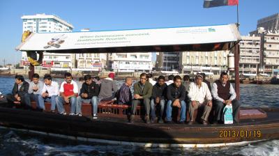 渡し船のアブラ船は定員になると出発します。甲板には柵もなく結構怖いですが、慣れてくるとなかなか楽しくかんじます。