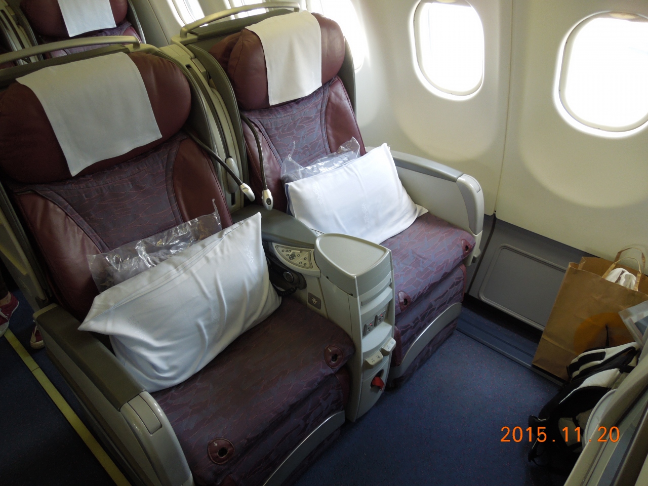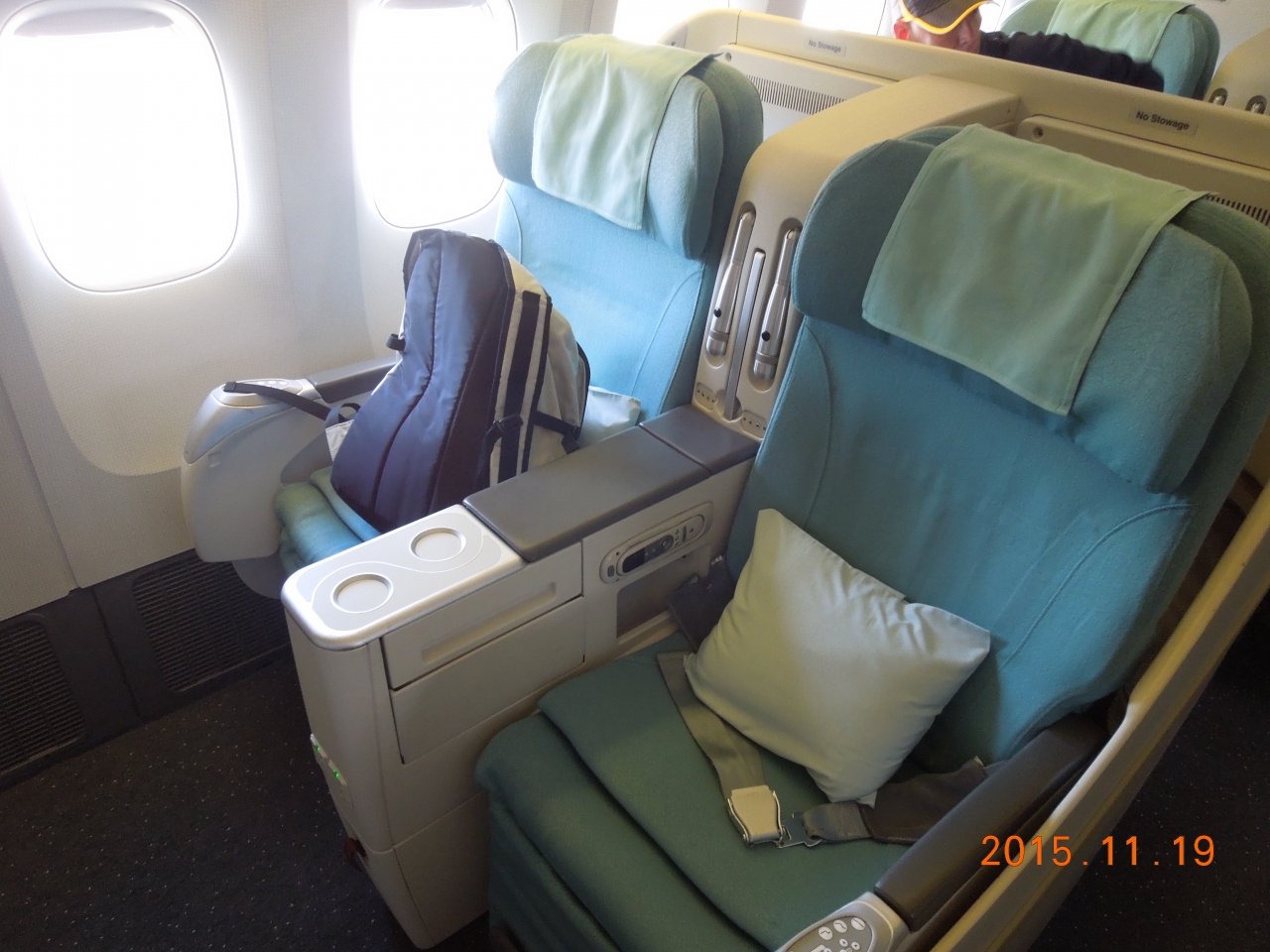 ビジネスクラス、フラットにはなりませんね。2区間共に短距離なので不満はありませんが、行きに利用したKEの方がフラットになって楽ですね。