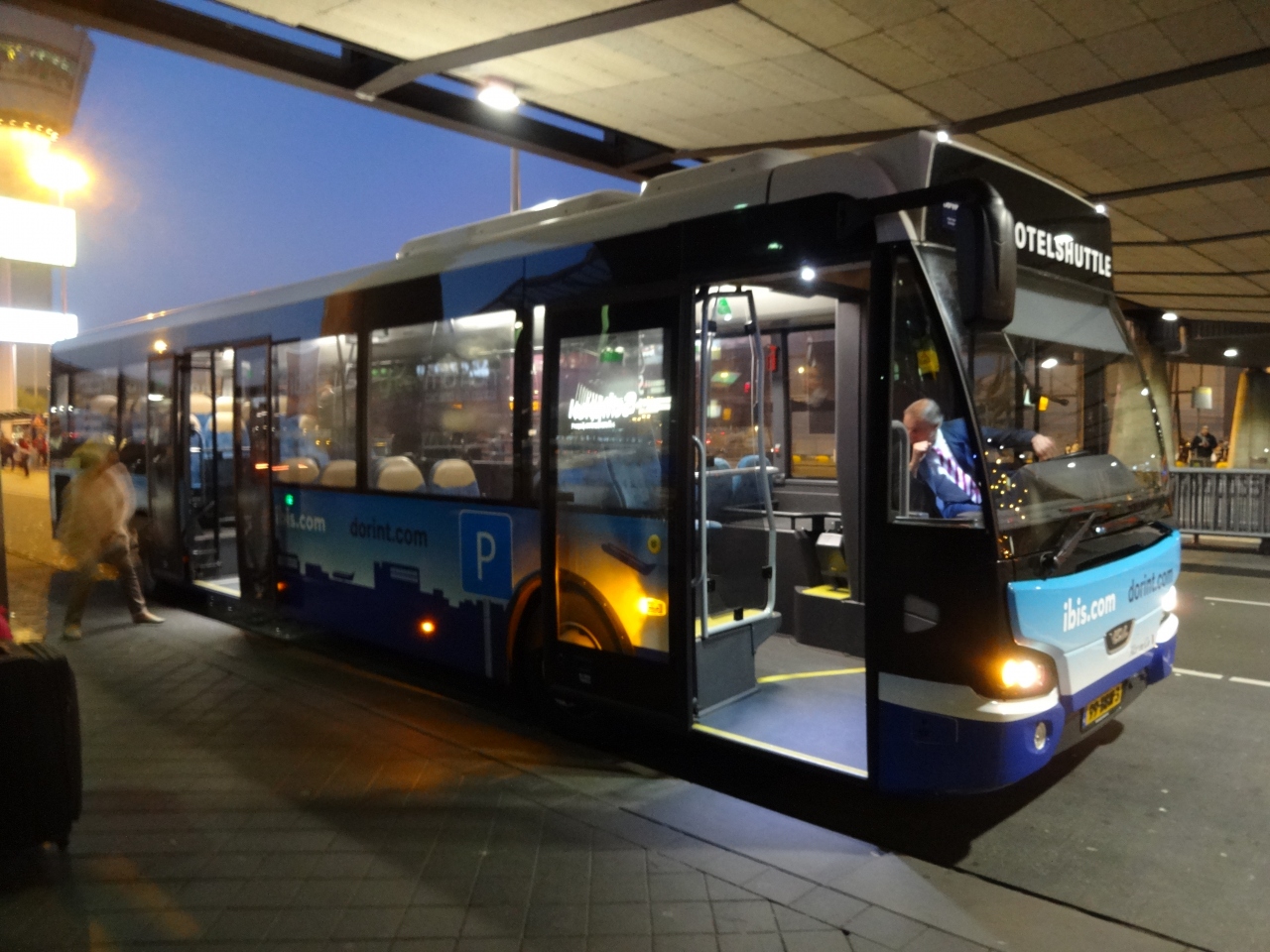 スキポール空港(駅)から「M出口」を出て1番のりば。ここはホテルバス専用のようでした。バス側面でホテルバスを確認して乗車します。