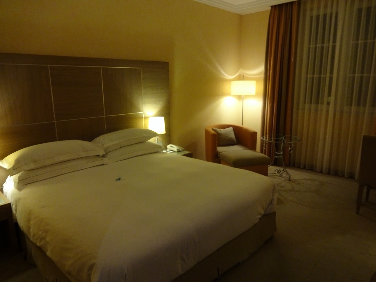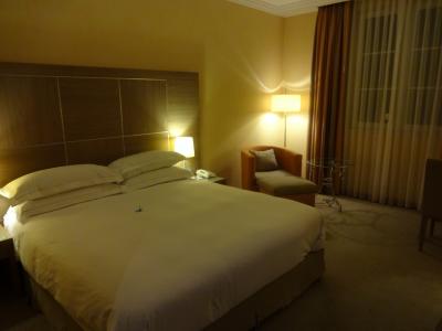 ホテルは近代的で大きく立派なホテルで、私がいつも泊まるホテルの中ではゴージャスな部類に入ります。部屋は広く、キングサイズのベッドが置かれ、バスタブ付シャワー室は清潔そのものです。もちろんシャワーの湯温や湯圧も問題ありません。