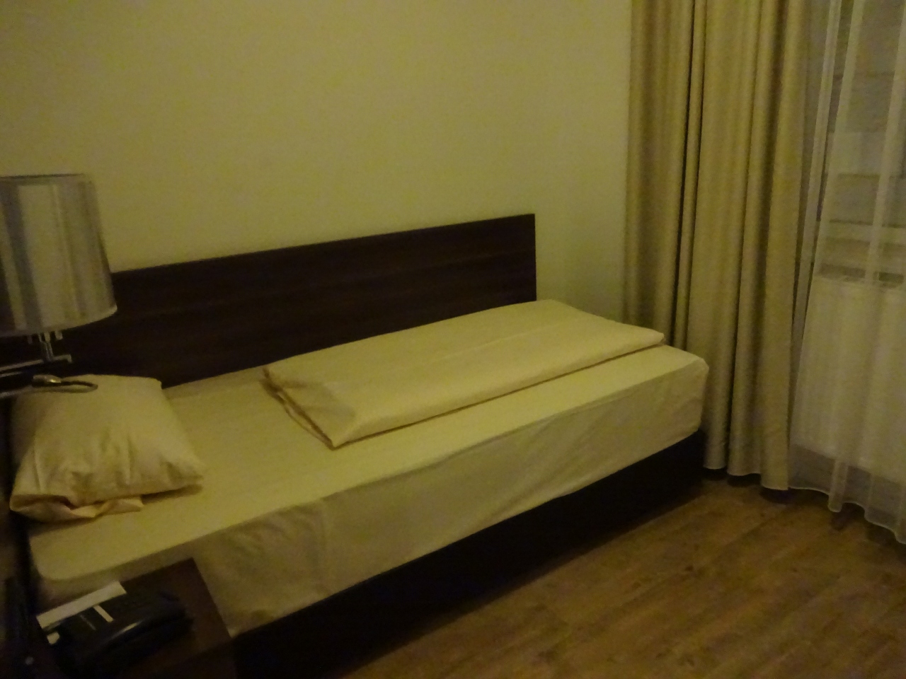 部屋は狭くはないですが、素寒貧としていて普通サイズのベッドがポツンと置かれています。浴室もバスタブはないですがシャワーは湯温湯圧とも申し分ありませんでした。