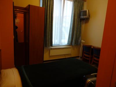 部屋はいたってシンプルで、狭すぎはしませんが中央にどっかとベッドが設えてあり、机・椅子・クローゼットも小さいながらありました。シャワーは畳半畳分の小ささでしたがカーテンもあり湯温・湯量ともまずまずでした。フロントも事務的ですが信頼できそうでしたし、朝食もパンにシリアル程度の簡単なものですが付いていたので良かったです。総じて利便性とコストパフォーマンスは良いホテルだと思います。- 旅行時期