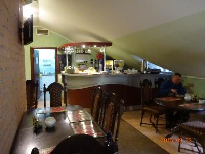 鉄道駅からは10分程度で行くことができ、駅周辺には繁華ではありませんがスーパーやファストフード店などもあり便利です。ホテルの部屋は狭かったですが、天井が高く、ベッドはキングサイズとちょっとチグハグしている部分もありますが、浴室はバスタブもありゆったり入れます。1階に宿泊したのでEVの有無は確認できませんでした。