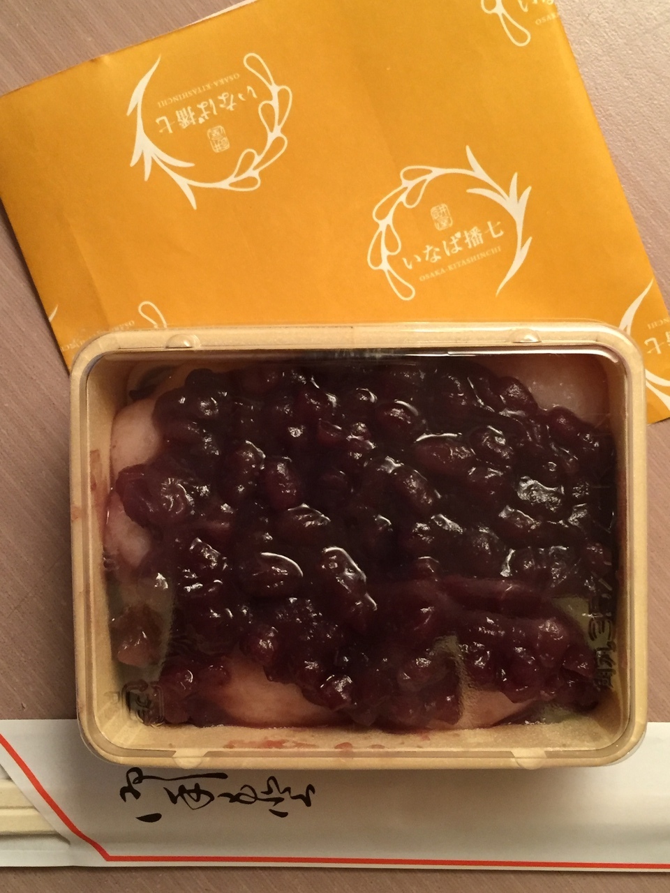 ネットリしたお餅に甘めの大納言小豆が上に乗っかっている餅好きには至福の逸品.お餅はやや水分が多く,しっかりとした甘い餡のハーモニーでちょうど良いかもしれません.どっしりとした渋めのお茶に合わせて下さい.